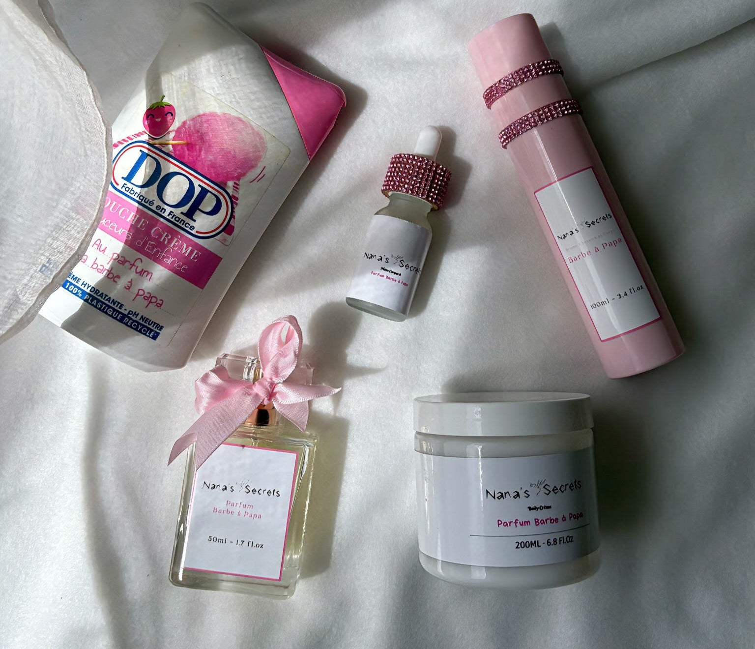 Ravie d’avoir fait confiance en Nana’s Secret pour découvrir une compo qui respire le soleil : le pack crème barbe à papa + le musc monoi = ☀️🧜♀️🍬🏖️